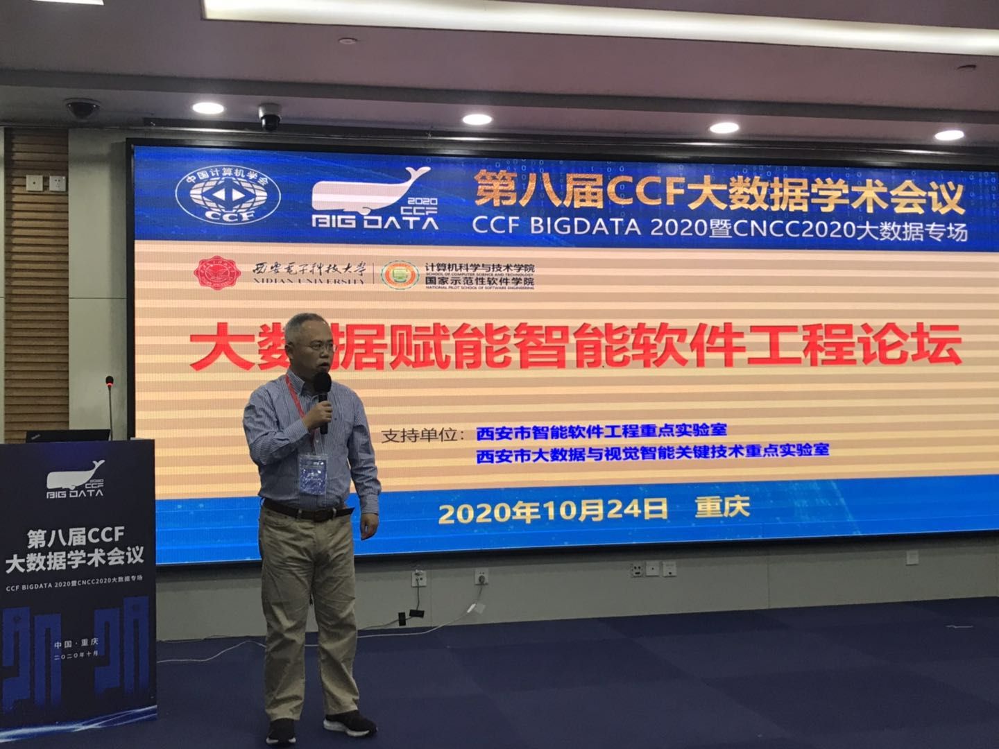 (通讯员 徐悦甡)10月22日至10月24日,第八届中国计算机学会大数据学术会议(CCFBigdata 2020)在重庆召开,会议由中国计算机学会(CCF)主办,CCF大数据专家委员会与西南大学承办,beat365唯一官方网站等单位协办。此次大会也作为中国计算机大会(CNCC)的两个专场之一,与沈阳、杭州、济南3个分会场和厦门专场同时进行线上直播。我校软件工程学科部分学术骨干教师作为大会协办单位集体参会,并举办了“大数据赋能智能软件工程”论坛。