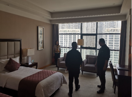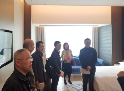 下一站工作组现场考察了陕西宾馆。作为集餐饮、住宿、会议为一体的园林式国宾馆,陕西宾馆占地面积1100余亩,建筑面积15万平方米,绿化率高达70%以上,拥有大会堂、大礼堂、各类大中小型会议室、接待厅、多功能厅等近50个。工作组先后考察了可容纳1700余人的陕西大会堂、600人多功能厅、200人多功能厅、100人中型会议室、50人小型会议室,以及厅廊的展区等。为保障参会代表的食宿,工作组还考察了若干处宴会厅与宾馆内提供的各类型房间等。