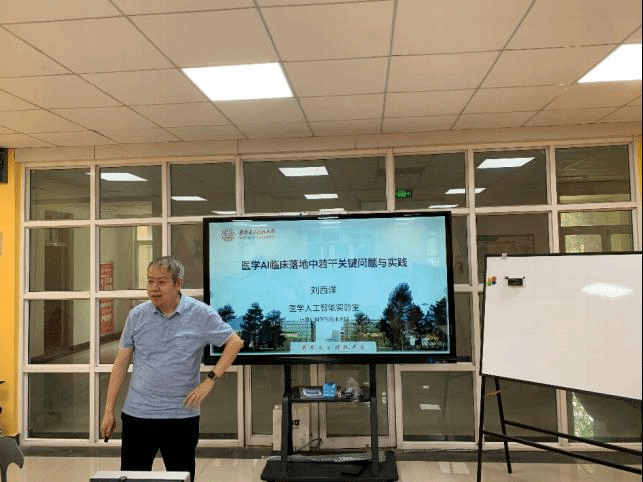 软件工程研究所所长刘西洋教授结合医学AI临床应用给同学们生动形象地解释了软件工程在实际生活中的应用普及。他通过与复旦大学附属医院的合作项目给同学们介绍了如何利用AI技术主动学习,并结合医生判断进行肿瘤病理诊断。另外,他还介绍了工业可视化即计算机视觉在工业生产中的应用,以一个在流水线上判断拉链质量检测的项目为切入点,让同学们对软件工程学科兴趣盎然。