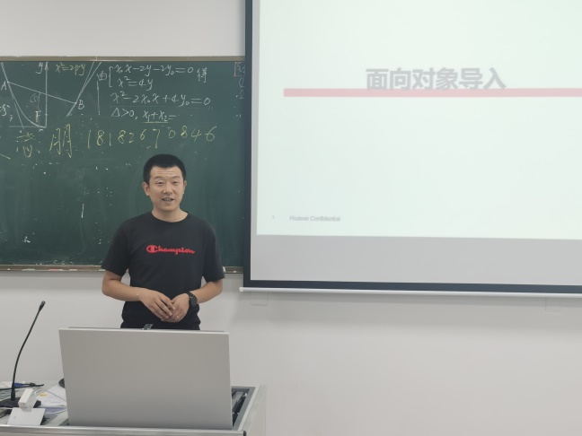接下来,负责本次课程的华为专家宋志朋老师开始正式授课。宋志朋老师幽默风趣,平易近人,以西电毕业的师兄身份迅速拉近了与学生的距离,他表示要带领师弟师妹避开自己曾经编程掉过的坑,认识职场上和学校里编程的区别。
