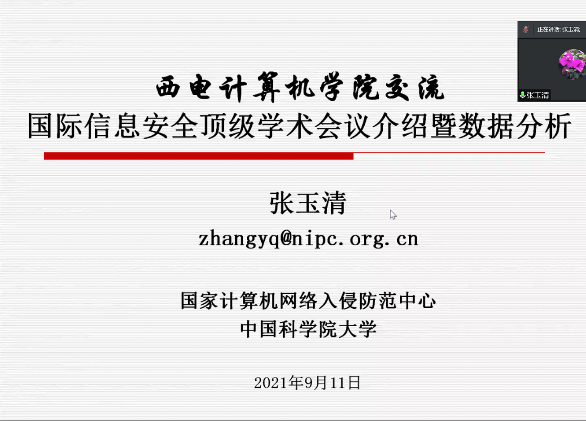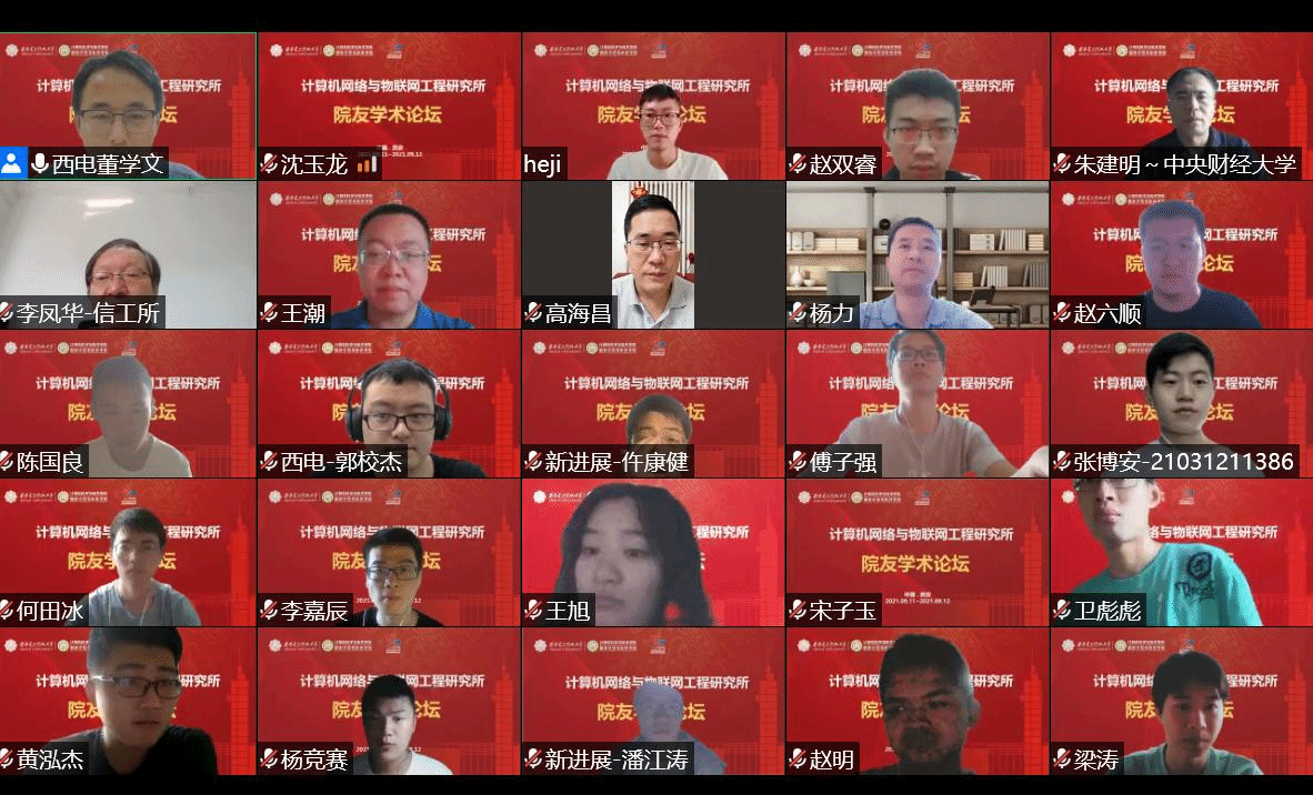 (通讯员 董学文)为迎接我校九十周年华诞,进一步增加院友与学院的联系,促进学术交流与合作,拓宽师生学术视野,扩大学院学术影响力,2021年9月11日至9月12日,我院举办了beat365唯一官方网站计算机网络与物联网工程研究所院友学术论坛。本次论坛由陕西省网络与系统安全重点实验室主办,计算机网络与物联网工程研究所承办,以线上线下结合的形式开展。论坛围绕计算机网络安全领域的最新学术进展,邀请了中国科学院大学、西安交通大学、中央财经大学、上海大学、兰州理工大学、河南工业大学等国内计算机学科优势高校的网络与安全领域青年教师进行学术交流,并通过主题报告、交流沙龙的形式分享了智能计算机网络和安全领域的理论和技术新进展,加强了实验室学术前沿交流,扩大了我校计算机学科的知名度与影响力。论坛吸引了国内外计算机网络和安全领域相关师生和从业人员的广泛参加,论坛参与人次超500。
