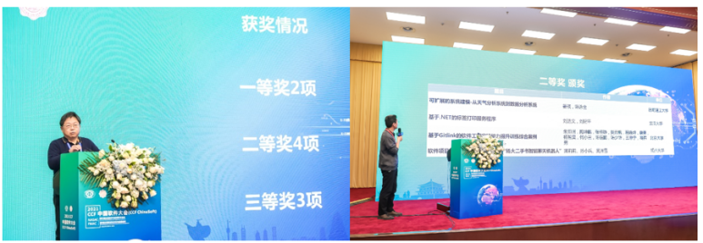 软件工程教学案例交流与竞赛也举行了颁奖,由大赛评审委员会主席、武汉大学应时教授与华为公司王千祥主任介绍竞赛获奖情况,共有9支来自全国各高校的作品获得一等、二等与三等奖。