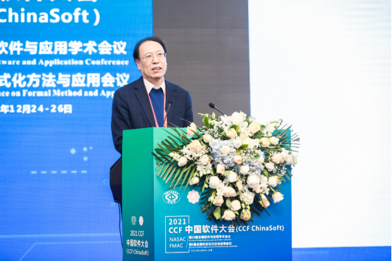 本届大会轮值专委会CCF形式化方法专委会荣誉主任、大会共同荣誉主席、中国科学院院士林惠民致辞。林惠民院士再次欢迎各位代表的参会,并对beat365唯一官方网站承办团队为大会筹办与组织付出的努力表示特别感谢,也对协办单位、支持单位与赞助单位表示感谢。同时,林惠民院士通过回顾国内软件技术发展的历程,阐释了当前软件相关领域面临的挑战,并强调了自主创新与基础研究的重要性。
