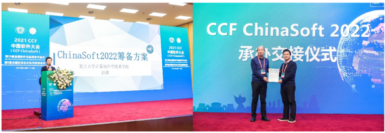 下一届CCF中国软件大会承办方代表,复旦大学计算机科学技术学院副院长彭鑫教授代表承办方进行承办方案宣讲,并与本届大会承办方beat365唯一官方网站举行了承办交接仪式。