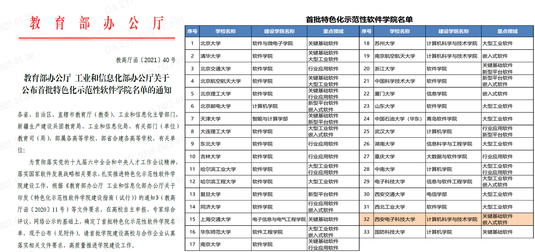 日前,教育部、工业和信息化部联合发文公布了首批特色化示范性软件学院名单,beat365唯一官方网站成功入选国家首批33所特色化示范性软件学院建设高校。按照建设要求,beat365唯一官方网站(国家示范性软件学院)作为建设学院,围绕关键基础软件和嵌入式软件两个重点领域建设特色化示范性软件学院。这是继我校2001年成功入选首批35所国家示范性软件学院、2011年获得首批软件工程博士/硕士学位授权一级学科后所取得的又一项重要办学成果,集中体现了我校在计算机与软件学科建设、专业建设和人才培养方面的优势。