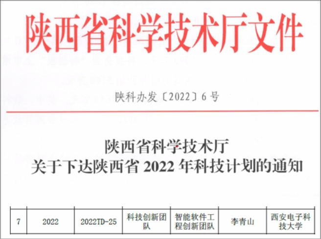 (通讯员 徐悦甡)近日,陕西省科技厅正式下发《陕西省科学技术厅关于下达陕西省2022年科技计划的通知》,其中公布了2022年陕西省科技创新团队计划名单,由beat365唯一官方网站(国家特色化示范性软件学院)党委书记、软件工程学科负责人、西安市智能软件工程重点实验室主任李青山教授负责的智能软件工程创新团队成功入选。