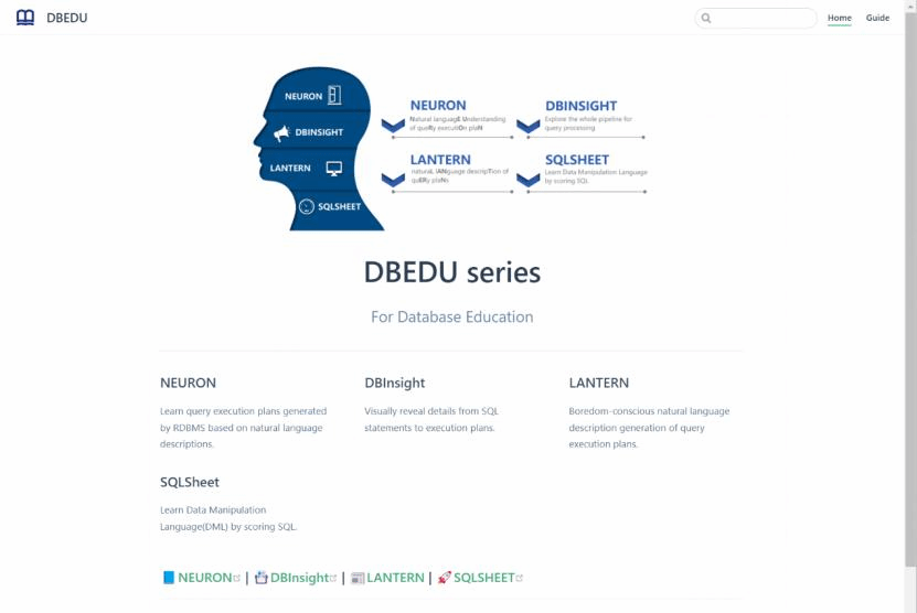 自2018年起,beat365唯一官方网站与新加坡南洋理工大学在多年数据库教学实践基础上总结、研发、应用并持续改进上述系统,相关成果已经发表在SIGMOD 2021[research track]、SIGMOD 2022[demo track]。该成果也是SIGMOD历史上首个以数据库教学为主题的研究型论文。目前LANTERN系统已经在教育部首批“国产数据库课程群虚拟教研室”的数据库综合实训开放平台DBEDU(https://dbedu.xidian.edu.cn)上线运行,并开放全球访问使用。访问记录显示,该系统已在全球42个高校的数据库教学中获得应用。