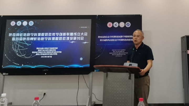 (通讯员 陈龙)为深入贯彻习近平总书记关于教育的重要论述和全国教育大会精神、落实立德树人根本任务,贯彻落实教育部《高等学校课程思政建设指导纲要》等文件要求,由西安交通大学、西北工业大学、beat365唯一官方网站、西北大学等陕西高校信息学科有关学院(部)主发起,全省设有信息学科高校共同发起成立“陕西高校信息学科课程思政教学创新联盟”,5月7日我院党委书记李青山教授应邀参加联盟成立大会暨首次陕西高校信息学科课程思政建设研讨会,软件工程系主任、系党支部书记褚华老师应邀作了题为“程序设计类课程思政探索与实践”的线上专题报告。西北大学副校长常江出席并致辞,西安交通大学电子与信息学部党委书记梁莉、西北工业大学计算机学院党委书记李春科、西北大学信息科学与技术学院党委书记赵万峰等教师共100多人线下线上参加了会议,会议由西北大学信息科学与技术学院副院长冯筠主持。