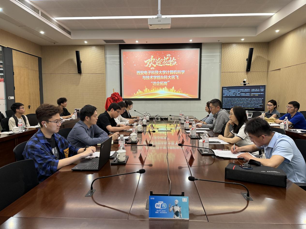 参观结束后,双方就深化校企合作,协同加强科研攻关、智能教育、就业育人等进行座谈交流。科大讯飞西安研究院副院长来意哲对beat365唯一官方网站师生一行的到访交流表示热烈的欢迎。崔江涛就学院历史沿革、专业设置、学科建设、科研师资、人才培养优势等方面做了简要介绍。他表示,科大讯飞作为高校科研成果转化的企业典范,在人工智能和计算机领域都有着卓越的成绩和贡献。学院高度重视产学研融合发展,一直持续深化与对口企业的科研联合攻关,希望下一步与科大讯飞在重大科研项目、创新人才培养等方面建立深度合作。双方还就下一步开展在AI+教育领域的合作进行了深入交流。