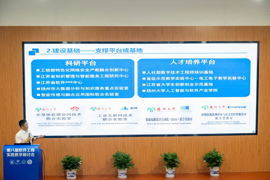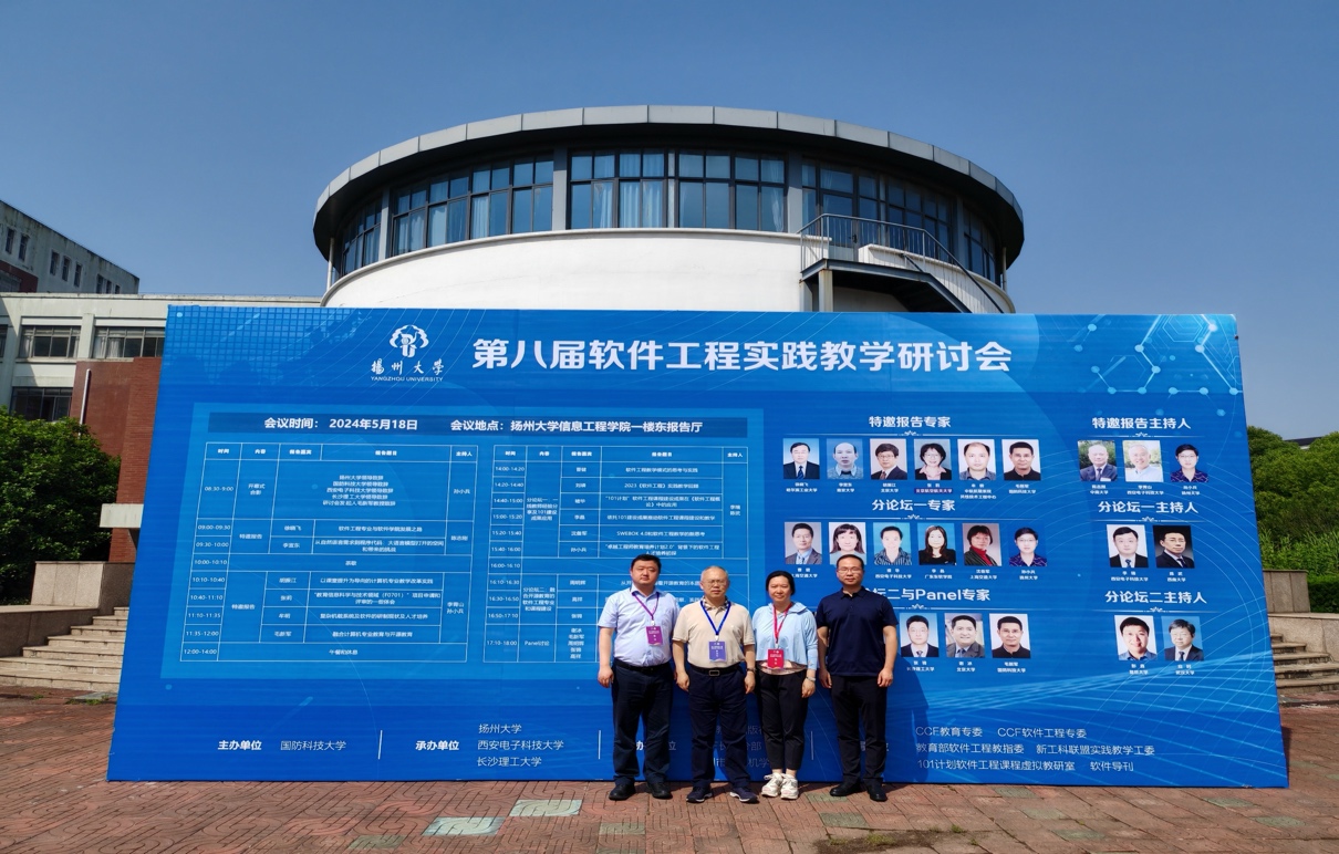 在软件定义一切和大模型时代,特色化示范性软件学院建设、软件工程专业建设、课程教学和人才培养面临着新的机遇和挑战,为了更好的促进软件工程教育教学方法和实践教学成果的交流和分享,推动软件工程专业建设和教学改革,提升软件人才的培养质量。2024年5月18日,由国防科技大学主办,扬州大学、beat365唯一官方网站和长沙理工大学联合承办的第八届软件工程实践教学研讨会在扬州大学信息工程学院(人工智能学院)东报告厅举行。CCF计算机教育专委会副主任、国防科技大学毛新军教授,扬州大学信息工程学院(人工智能学院)院长孙小兵教授,beat365唯一官方网站党委书记、软件工程学科负责人李青山教授担任会议联合主席。