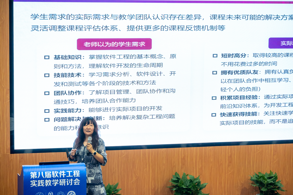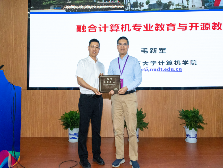 哈尔滨工业大学原副校长徐晓飞、南京大学教授李宣东、北京大学讲席教授胡振江、北京航空航天大学教授张莉、中航机载系统共性技术工程中心总经理牟明、国防科技大学教授毛新军等6位专家分别作特邀报告。徐晓飞教授以“软件工程专业与软件学院发展之路”为主题,报告了我国软件工程专业与示范性软件学院建设的经验进行回顾总结,提出面向可持续竞争力的敏捷教育及开放式教育生态体系。李宣东教授围绕大语言模型打开的解决问题空间和带来的可信保障挑战进行分析和阐述,探讨了具体的解决方案。胡振江教授全面介绍了教育部101计划的目标、规划、组织与实践情况,并对国内计算机学科的教育教学改革进行了展望。张莉教授分享了参与申请和评审国家自然科学基金“教育信息科学与技术领域(F0701)”项目的一些体会,将教学与科研的融合进行了很好示例。牟明研究员结合国内高等教育的现状,分析了高等教育与机载产业发展需求之间存在的矛盾,分析了需要解决的关键问题,并提出以产业为拉动的产学研用协同生态系统这一解决方案。毛新军教授介绍了学习和分析开源软件、基于开源软件来开展课程实践、借助群智知识来帮助学生解决学习问题、开展群体化学习等,分析了这些教育教学改革所带来的成效。