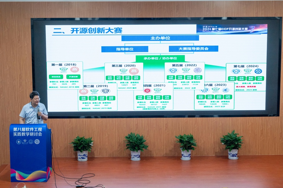 本次研讨会内容包括特邀报告、“一线教师教学经验分享及101建设成果应用”分论坛、“融合开源教育的软件工程专业和课程建设”分论坛以及Panel讨论四部分。