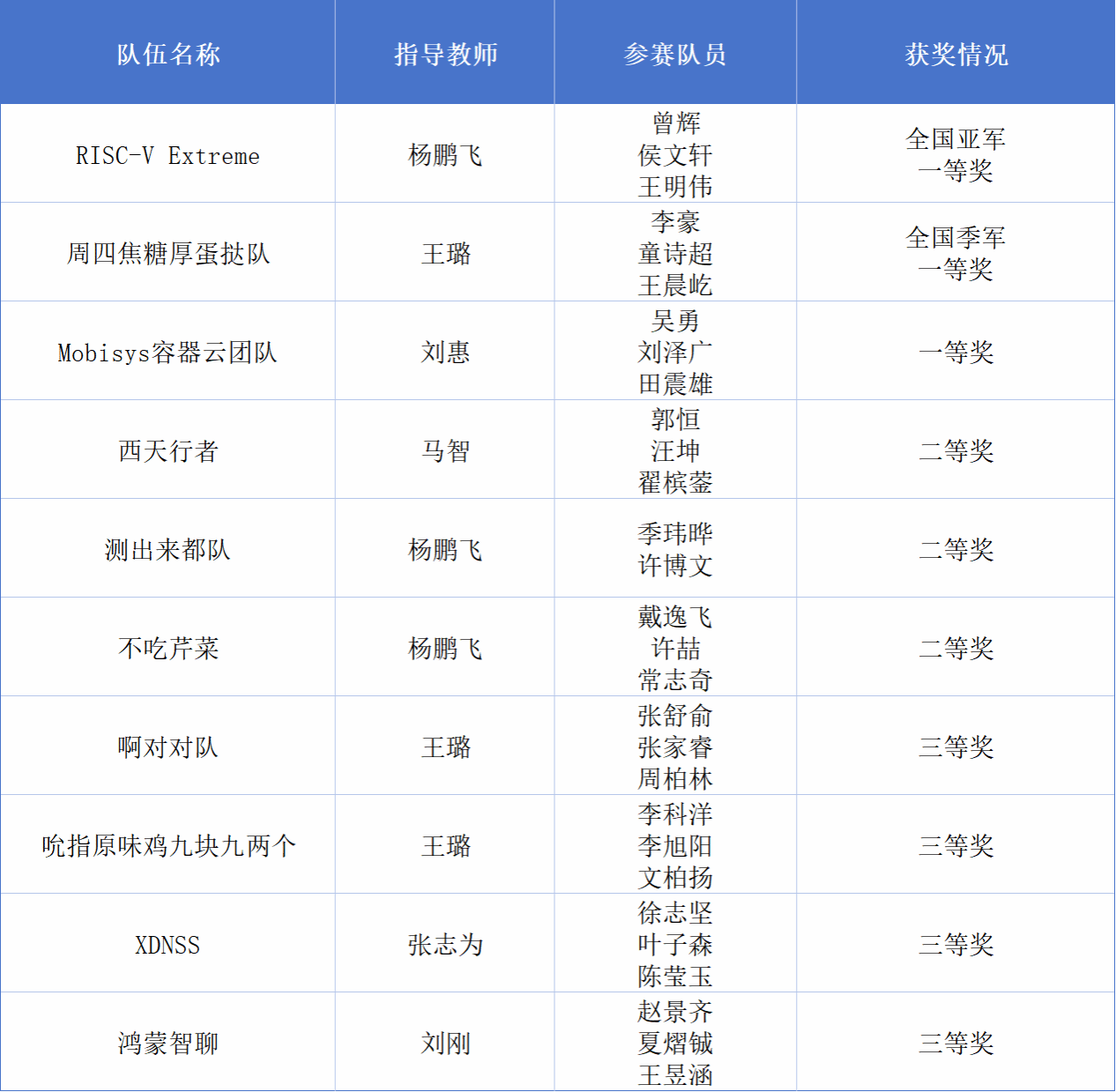 荣获全国亚军、一等奖团队介绍