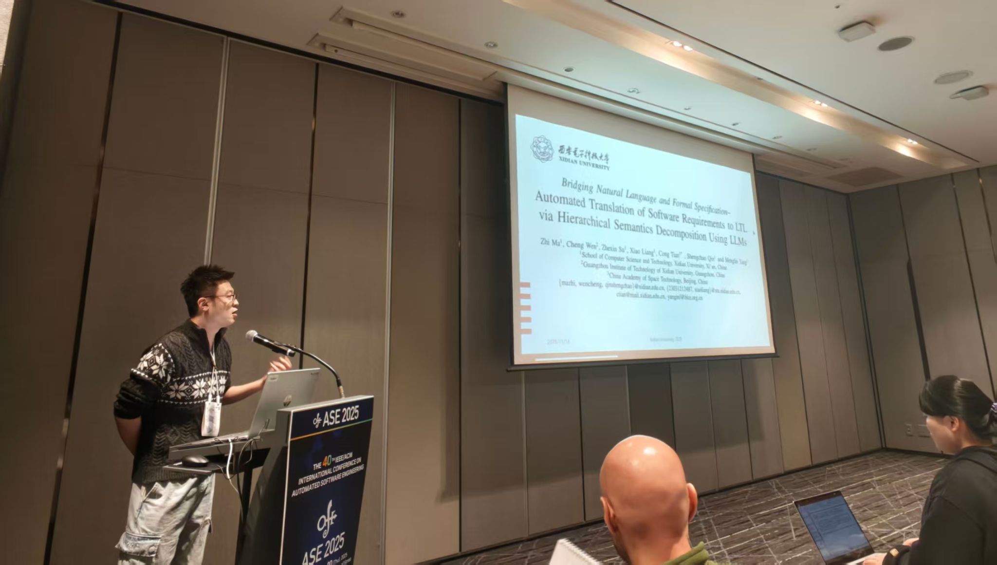 该科研工作围绕杨孟飞院士主持的国家自然科学基金重大项目《嵌入式软件智能合成基础理论与方法》所提出的关键科学问题展开。目前,Req2LTL工具已实际应用至我国重大航天工程,并且正在扩展至轨道交通、智能汽车、工控系统和操作系统等领域。马智博士在ASE2025会场现场报告了该科研工作,引起了热烈的反响与讨论,该工作为形式化方法在航天重大工程中的应用进行了初步探索,是推动其从理论研究走向工程实践的一次积极探索。