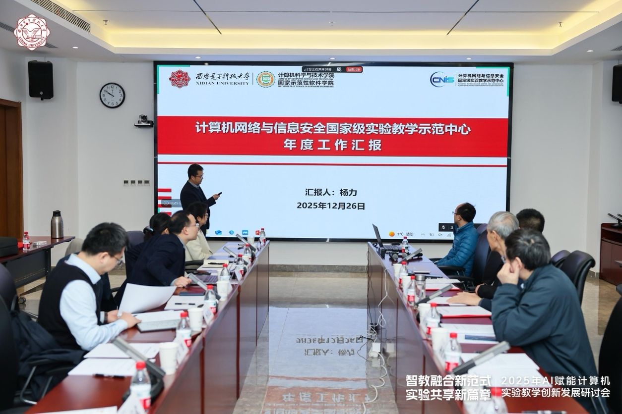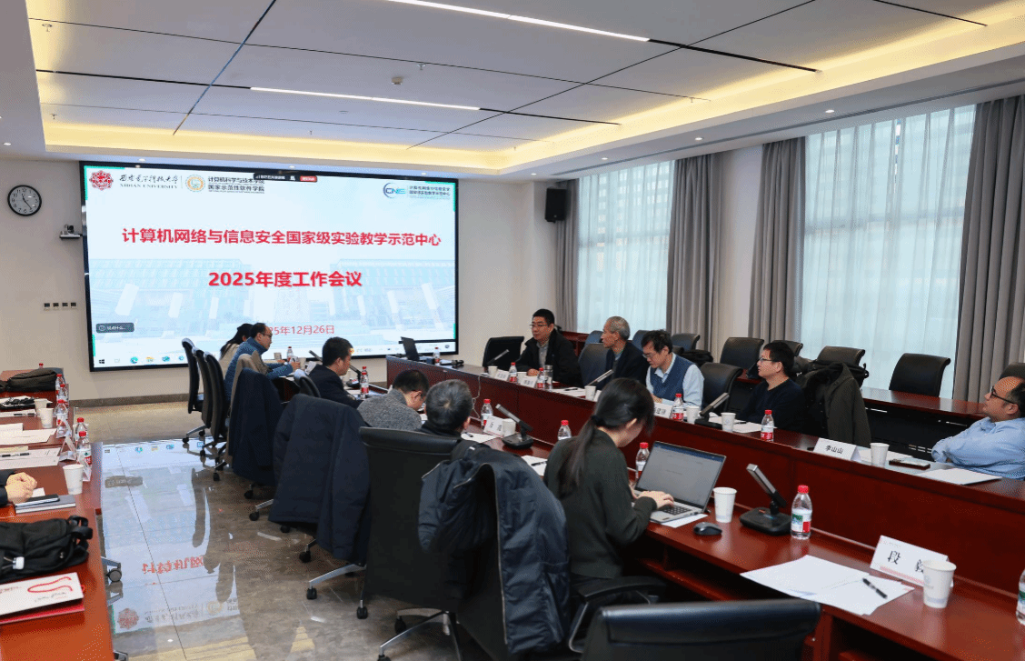 12月26日上午,“计算机网络与信息安全国家级实验教学示范中心2025年度工作会议”在南校区会议中心A121会议室举行。国家级教学名师、西安交通大学桂小林教授,国家级教学名师、陕西师范大学傅钢善教授,西北大学信息科学与技术学院副院长冯筠教授、实验中心主任杨建锋高级工程师,华为高校系统部鲁月华主任,西电教务处副处长兼教师教学发展中心办公室主任杨明磊,电子工程学院副院长任爱锋,beat365唯一官方网站副院长万波、本科教学办公室主任张亚菲及实验教学中心教师代表,共计20余人参加会议。会议由学院副院长兼国家级实验教学中心主任杨力主持。
