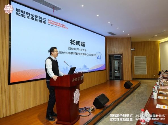 开幕仪式上,杨明磊首先代表学校致辞,热烈欢迎与会嘉宾。他指出,西电作为电子信息领域的重要人才培养和科技创新基地,始终致力于推动教育教学改革与信息技术深度融合。期待通过本次会议,搭建起一个高水平的交流平台,分享最新成果,碰撞思想火花,凝聚发展共识,共同推动计算机实验教学向更智能、更开放、更高效的方向发展。臧玉春代表中国高等教育学会教育信息化分会致辞。他表示,本次会议的主题,紧扣时代脉搏,聚焦关键问题,具有重要的理论价值和实践意义,并分享了自己的四点建议。李山山代表国家级实验教学中心联席会计算机学科组致辞,他强调实验教学是高等教育中不可或缺的一环,尤其在计算机学科中,它直接关系到学生工程能力、创新思维和解决复杂问题能力的培养。期待通过交流,推动形成以学生为中心、以能力为导向的智能实验教学新范式。