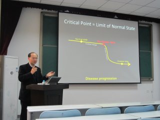 ”的学术报告。他在报告中详细介绍了系统生物学重点实验室近年来的研究内容,重点介绍了团队目前的研究方向和所取得的研究成果,尤其是在设计动态网络标记物(DNB)检测人类疾病方面取得的突破,并与在座师生交流互动。