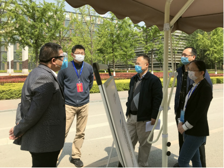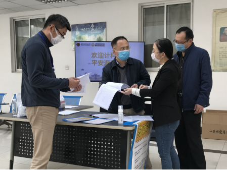 最后,学院工作组一行专程到南校区东门学生返校入口,向现场负责入校登记、引导、检测、消毒等工作的书院负责人与工作人员,了解学生进入校园的具体流程与返校进度,确认了学院已返校学生的相关信息。