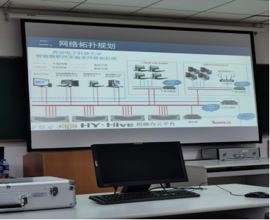 首先,培训中介绍了超融合云平台HyHive的架构及各部件功能。重点介绍了AIoT智能物联网教学实验箱组成和功能,核心处理平台、多种协议传感器,及预设的模拟场景演示。参与培训的老师就传感器组的应用环境、传输距离、性能指标等进行了学习和讨论。