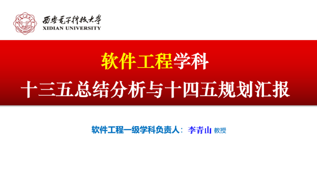 会议开始,首先李青山教授从我校软件工程学科基本情况、十三五学科总结与分析、十四五学科目标与举措三个方面向在座的参会教师阐述了软工学科建设取得的成果与未来的规划。学科基本情况部分,李青山教授从学科历史沿革、学科内涵、学科方向、学科状态数据等方面综合地归纳了我校软工学科的基本情况。然后,又沿着十三五的时间线,着重对比了十三五建设初期与结束时,学科数据的变化,包括师资队伍、人才培养、科研水平、评估结果等。并在总结建设成果的基础上分析了目前还存在的问题。接着,从国家战略、学科评估、学校布局三个层次着眼,阐述了软工学科在人才培养、学科平台、师资队伍、科学研究、社会服务等五个方面的建设举措,以实现学科内涵式发展、体系化发展、突破式发展的总目标。