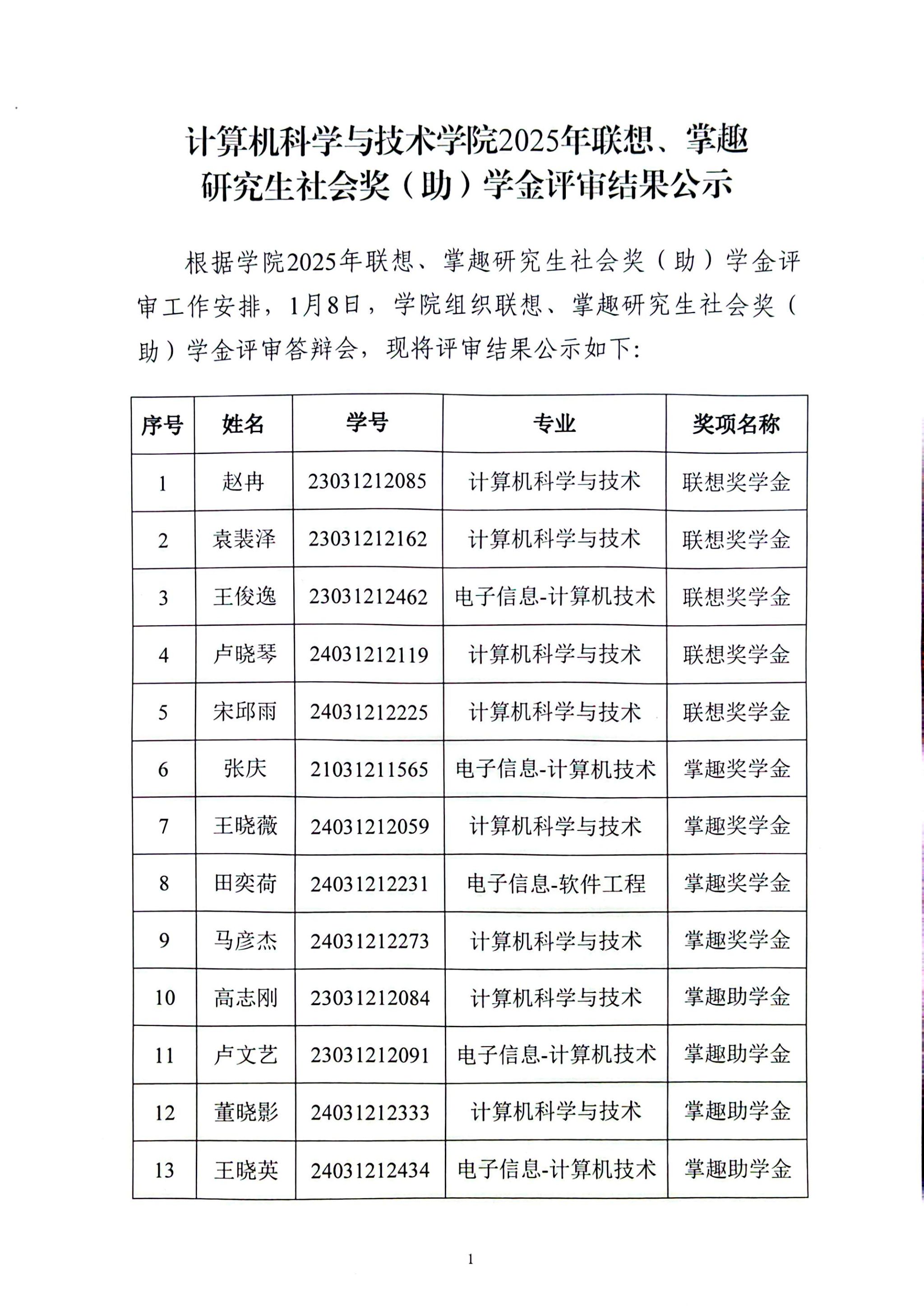 beat365唯一官方网站2025年联想、掌趣研究生社会奖(助)学金评审结果公示