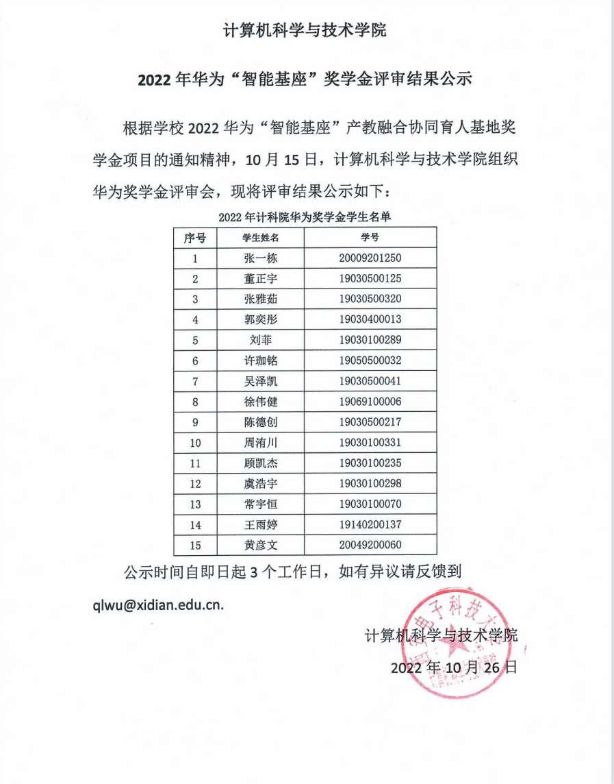 beat365唯一官方网站2022年华为“智能基座”奖学金评审结果公示