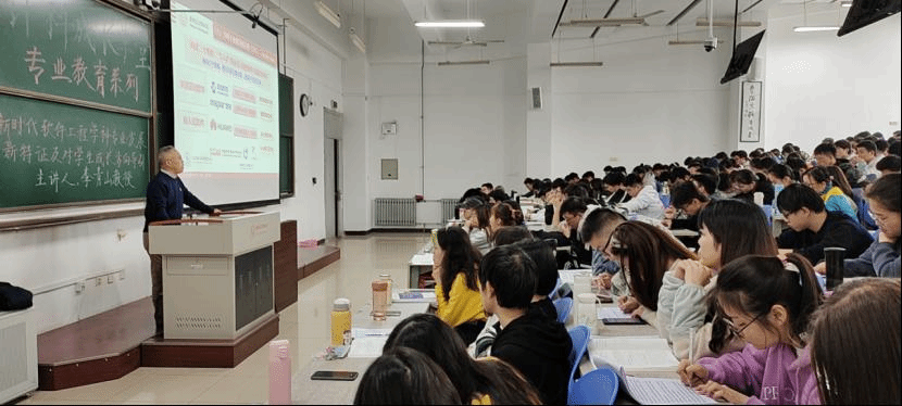 李教授结合新时代国家对于高等教育的新要求、软件工程学科专业发展的新特征,为同学们规划个人成长方向提出建议,强调个人发展要与时代大势同向同行,与国家社会需求同频共振。