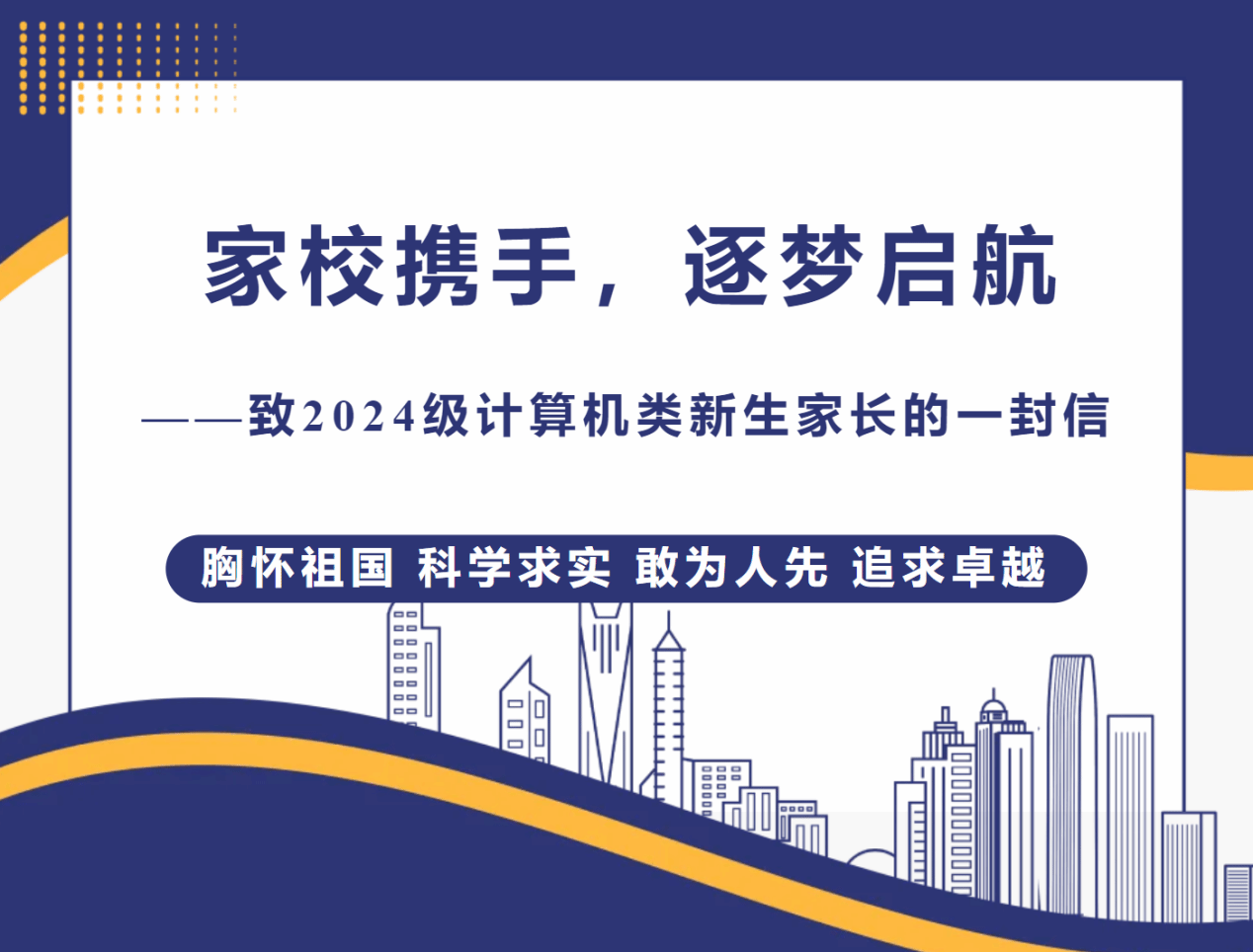 为保障2024级计算机类新生顺利报到入学,8月10日至8月30日,beat365唯一官方网站新生辅导员根据书院和学院的安排,通过“线上+线下”相结合的方式,开展联系新生、排查宿舍、疑问解答等工作,以饱满的工作热情迎接每一位新生的到来。学院还制作了致2024级计算机类新生家长的一封信,在信中向新生家长们介绍学院概况,并从新生适应、生涯规划、网络文明、家校联动等方面向家长提供成长锦囊,从新生入校之始提前谋划,发挥学校与家庭育人合力,共同促进学生成长成才。