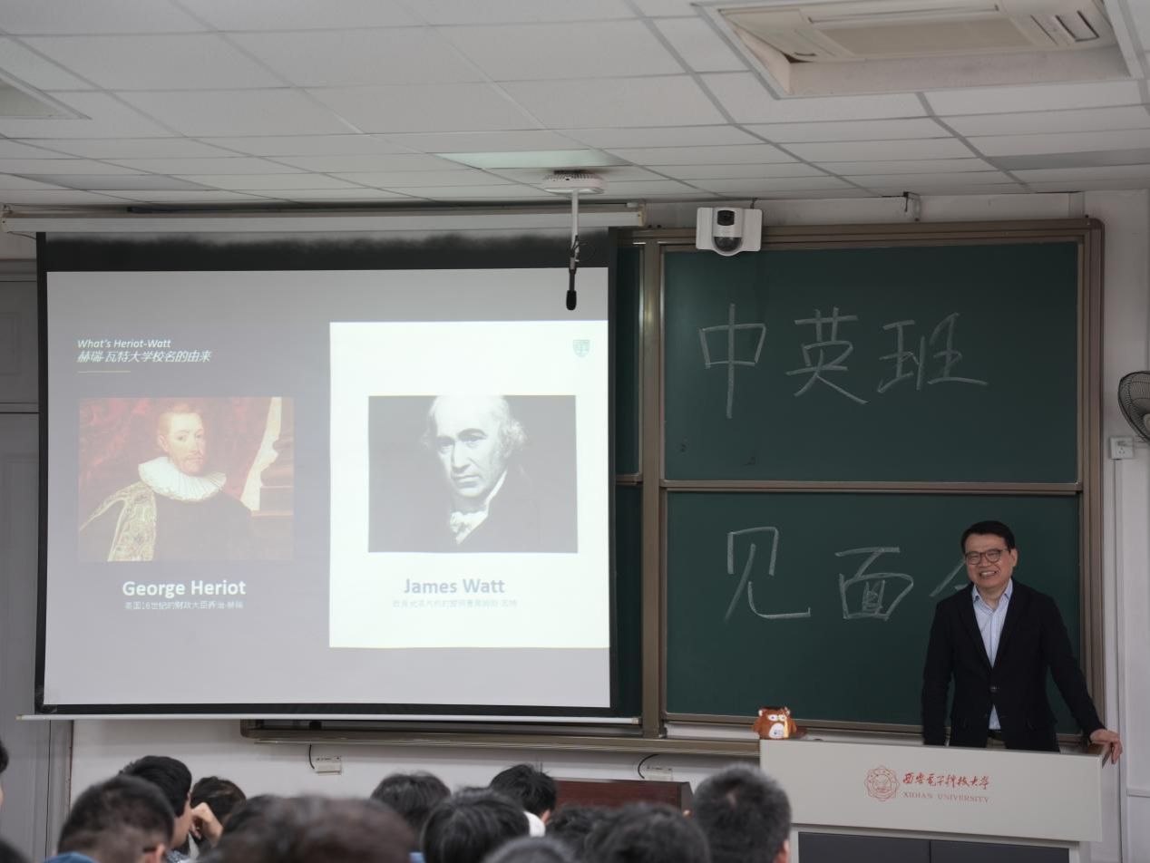 10月22日下午,王忠义老师代表英国赫瑞瓦特大学来访西电,与2025级计科院中英班学生于A-527开展交流分享活动。他结合赫瑞-瓦特学习工作的亲身经历,为学生详细介绍项目特色以及英国学习生活建议。他阐述了赫瑞瓦特大学的办学概况、国际排名与学科特色,并就项目的招生要求与毕业生就业情况,并系统展示了英方涵盖安全保障、就业指导、心理咨询与医疗服务的全方位支持体系。问答环节中,他就赫瑞瓦特大学的校史及现状与学生进行互动,结合丰富的图片展示,进一步介绍学校多元的社团文化及爱丁堡深厚的历史底蕴与城市魅力,有效激发了同学们对未来英国学习生活的热情与期待。