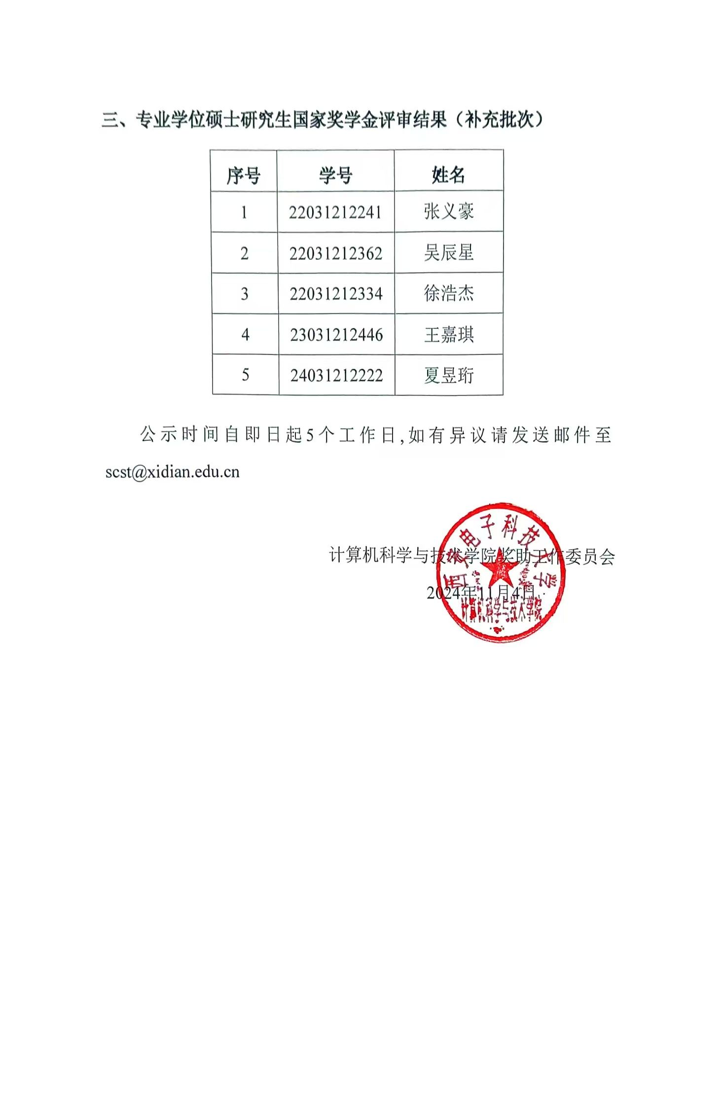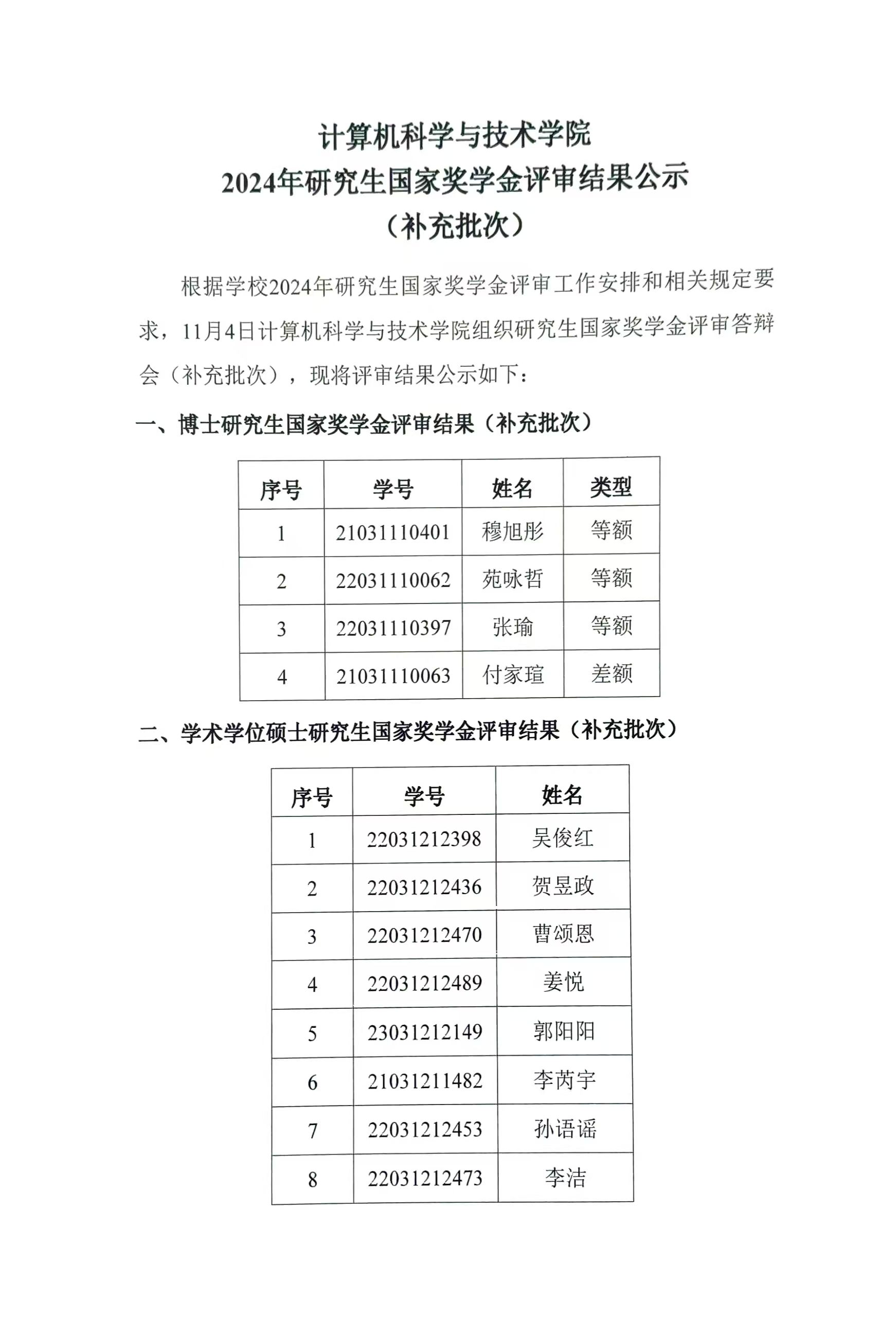 beat365唯一官方网站2024年研究生国家奖学金评审结果公示(补充批次)