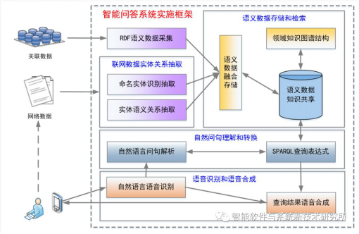 针对复杂自然语言文本信息抽取提出了多阶语义关系抽取方法,基于分布式知识图谱构建了知识抽取、知识融合和知识演化模型,研发了面向自然语言交互的智能问答系统。系统实现了联网数据实体关系抽取、语义数据存储与检索等关键技术,核心模块包括:①联网数据实体关系抽取模块;②语义数据存储和检索模块;③语音识别和语音合成模块;④自然问句理解和转换模块。