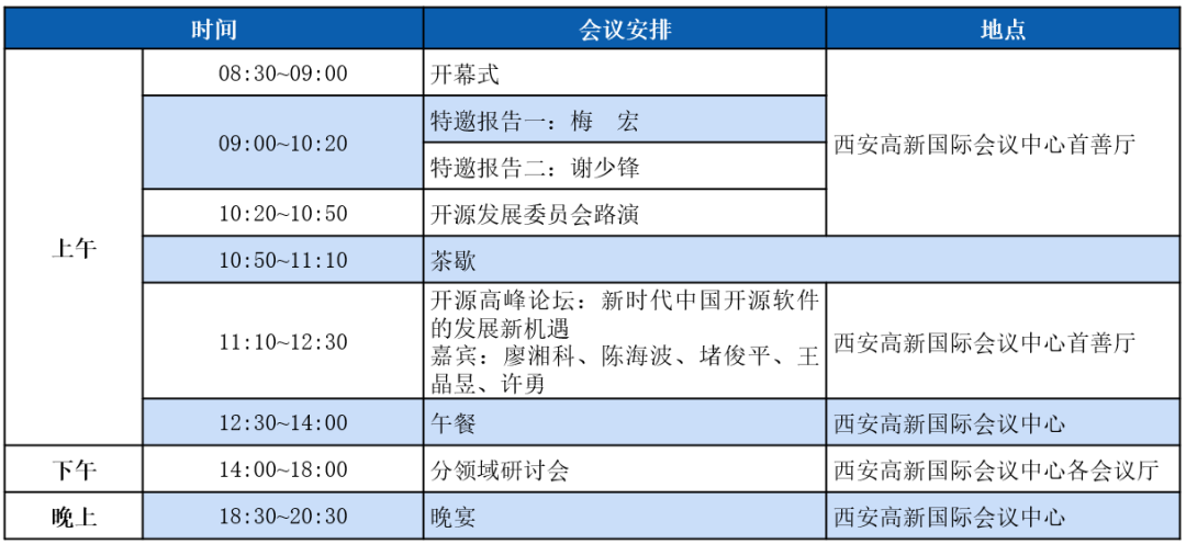 作为第一届CCF中国开源大会,本届大会将组织特邀报告、开源高峰论坛、开源发展委员会路演、社区论坛、技术论坛、教育论坛、开源创新大赛培训等20余个不同类型的活动。大会将邀请10余位开源及相关领域中国科学院院士、中国工程院院士与知名专家,为大会带来特邀报告并参加开源高峰论坛等活动。目前已邀请参会的两院院士与知名嘉宾包括中国科学院院士梅宏,中国工程院院士廖湘科,中国科学院院士王怀民,中国工程院院士孙凝晖,中国科学院院士钱德沛,工信部科技司司长谢少锋,清华大学教授胡事民等。本届大会预计将吸引参会单位超过100家,作为中国开源领域的年度盛会,诚挚地邀请开源领域学术界、企业界、教育界的学者、从业者、师生等前来参会!