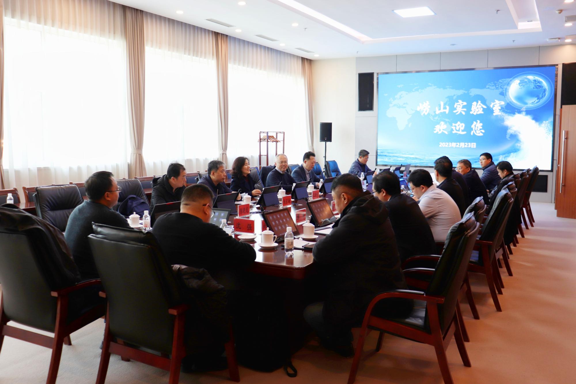 会前,一行人实地参观了崂山实验室超算大楼二楼展厅、海洋观测与探测联合实验室,了解崂山实验室研究重大前沿科学问题、系统布局和自主研发海洋高端装备等情况。