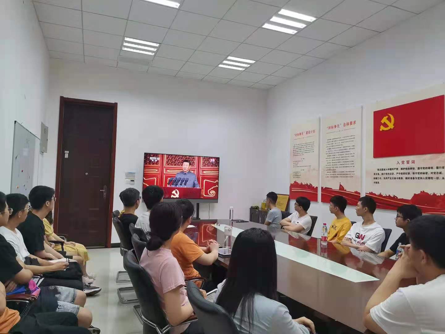 (通讯员 同榛)庆祝中国共产党成立100周年大会今天上午8时在北京天安门广场隆重举行。按照学校党委部署和学院党委工作安排,beat365唯一官方网站党委组织班子成员、两委委员在主楼二区319会议室集体观看,各党支部组织师生以线上线下、集体观看和自行观看等相结合的方式收看了庆祝大会实况直播,认真聆听习近平总书记重要讲话。师生倍受鼓舞,热烈讨论。