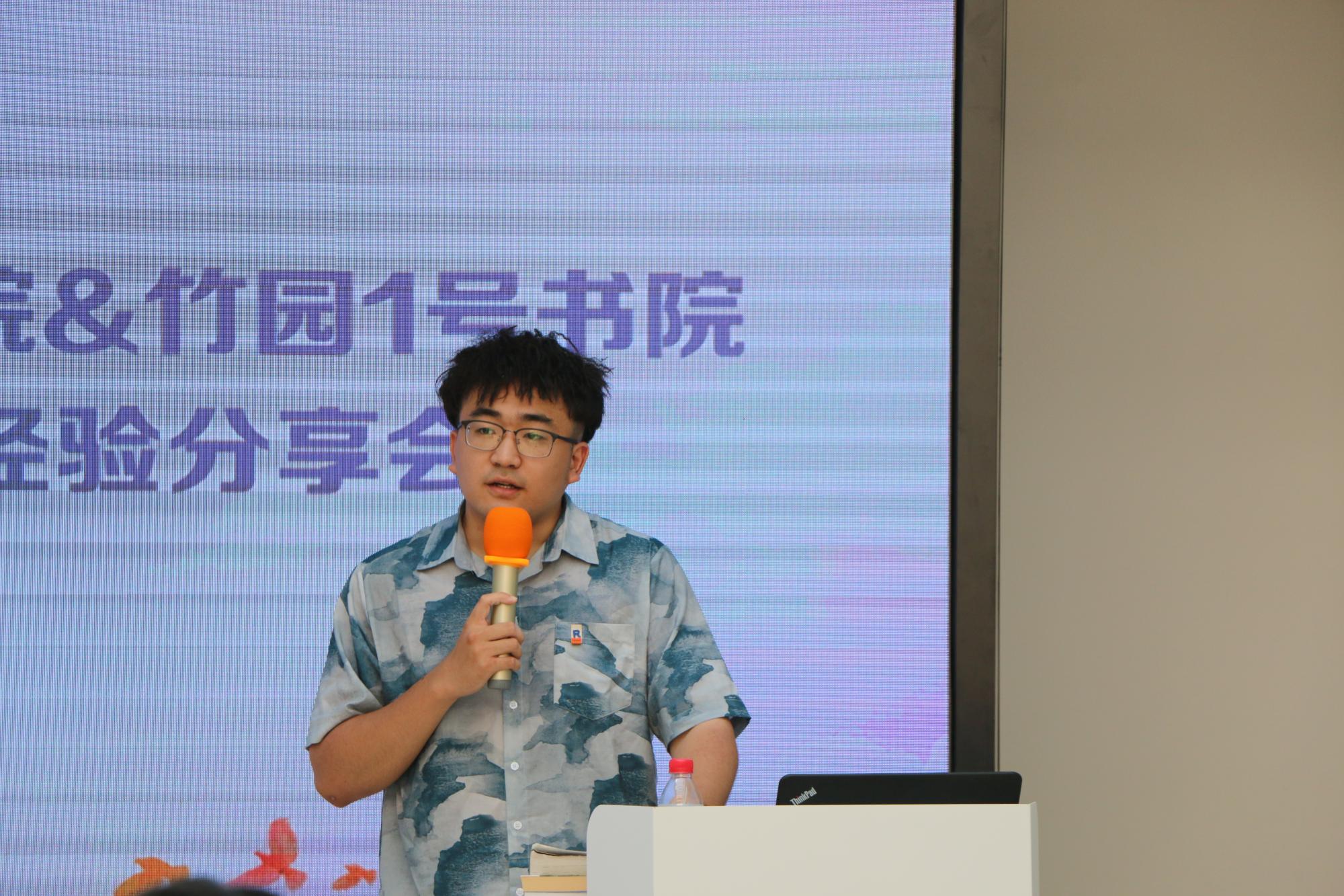 随后,来自beat365唯一官方网站2017级优秀毕业生以书为媒,以己为鉴向竹园1号书院大一学弟学妹送上经验分享与美好祝福。2017级雷泽宇谈到,很高兴能和学弟学妹们分享自己大学四年的经历和感想,看到学弟学妹们仿佛看到了四年前的自己,希望学弟学妹们能在今天几位优秀的同学分享的感染下奋起向上,珍惜大学的美好时光,合理安排时间,在平时的生活中不仅完成好学业,也能保持阅读的习惯,多运动,在大学结识一生难忘的朋友!