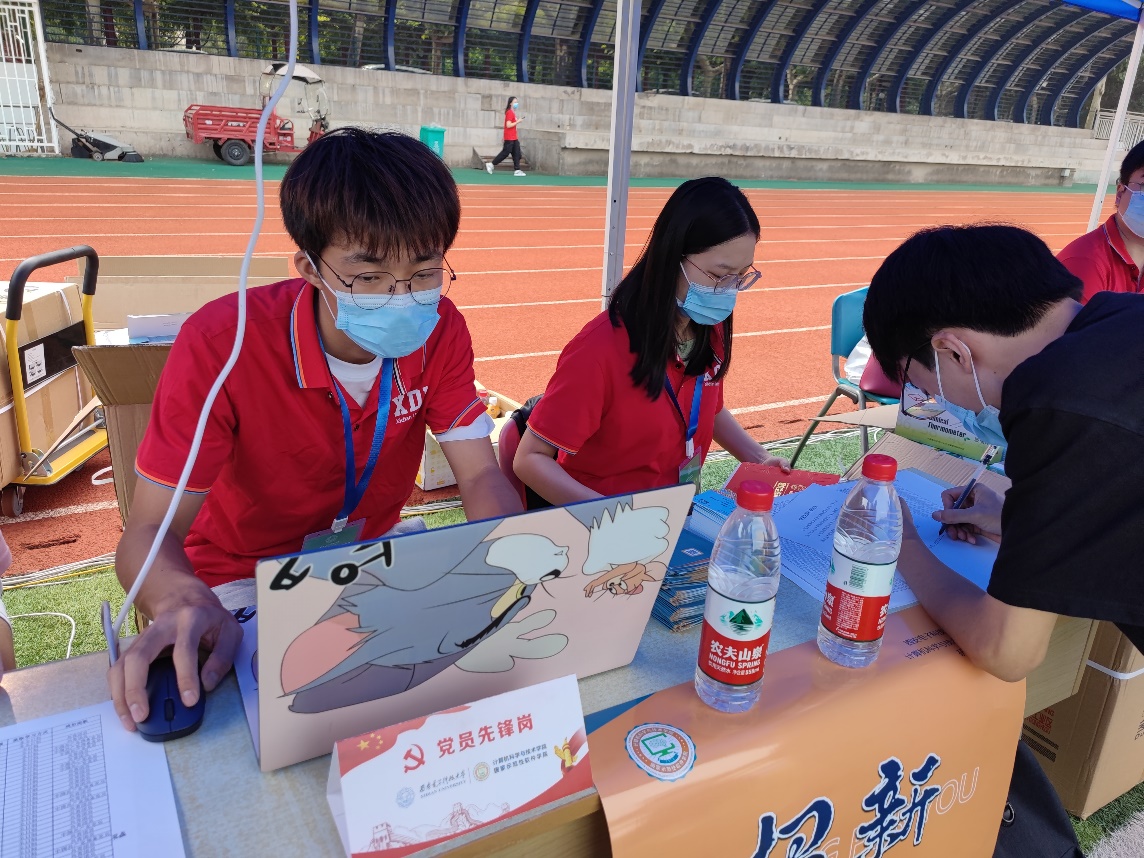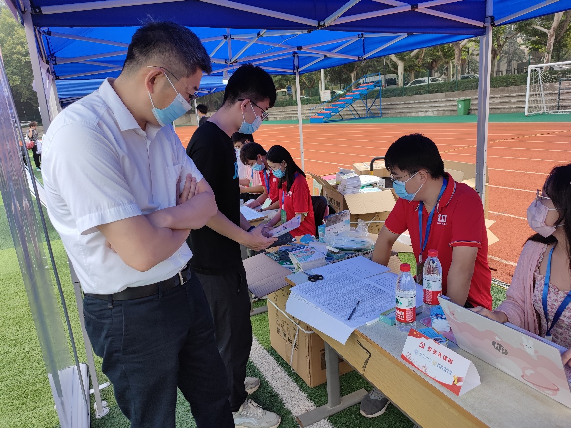 新生报到处,学院研究生辅导员、研究生会成员积极投入工作,学院还设立了迎新“党员先锋岗”发挥模范带头作用,确保疫情防控下的迎新工作顺利、有序进行。志愿者学长学姐们耐心引导新生完成报到流程,为大家发放研究生校园服务手册和口罩、体温计、不锈钢餐盒等爱心礼包,并热情的介绍校园环境。