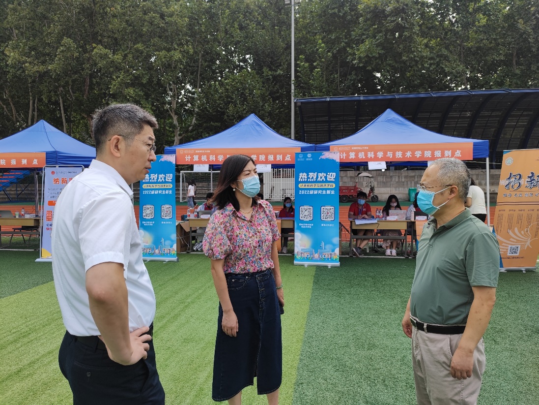 报到期间,学校、学院领导来到新生报到处,看望2022级研究生新同学,慰问参与迎新工作的师生员工。“从哪里来?一路辛苦了!”“务必做好疫情防护工作,照顾好自己!”“志愿者们辛苦了!”领导们关切的询问新生返校情况,并送上了亲切的问候。