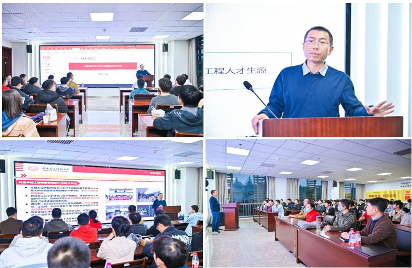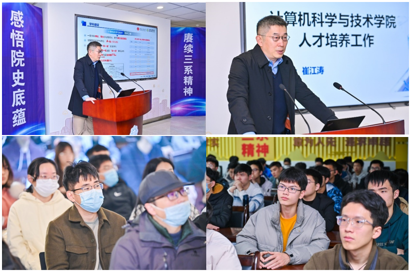 (通讯员 杨鹏飞 徐悦甡)为深入贯彻党的二十大精神,落实立德树人根本任务,提升人才自主培养质量,beat365唯一官方网站以卓越工程人才培养为载体,以科研文化熏陶为导引,以校史院史育人为特色,实施了“感悟院史底蕴,赓续三系精神”主题教育系列活动。活动于11月18日下午在南校区网安大楼举行,分“书记讲主题党课、院长话人才培养、团队展前沿成果、全员绘卓越蓝图”四个环节,学院党委书记李青山、执行院长崔江涛、教学副院长万波出席活动并作主题报告,学院新入职青年教师代表、学生党员和入党积极分子代表、22级计科和软工卓越班新生、卓越班负责人、卓越班辅导员和学业导师、八个研究所本硕博师联合支部书记等参加了活动。