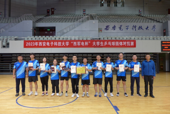 (通讯员 汪龙)5月28日,“西军电杯”大学生乒乓球团体对抗赛在南校区远望谷体育馆成功举办。beat365唯一官方网站由教师齐富和许晗、魏小雨等10名同学组成的师生团队一路披荆斩棘,最终荣获团体第二名的好成绩。