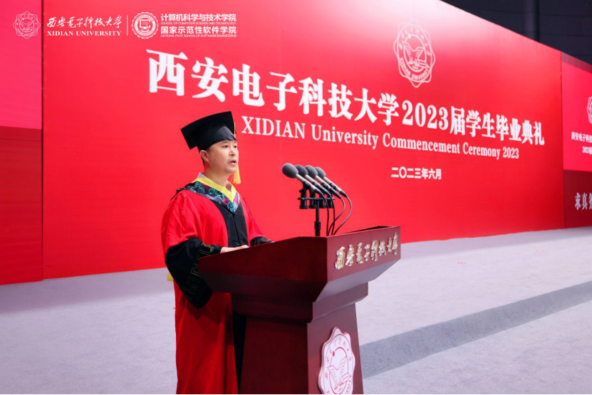 学院执行院长崔江涛教授深情寄语2023届毕业生,他谈到“艰难困苦,玉汝于成”,同学们在疫情期间克服困难云端学习,积极投身志愿服务,在挑战中自律坚守,在变化中适应突破,以青春“小我”战胜疫情大考;他谈到“行而不辍,未来可期”,beat365唯一官方网站(国家示范性软件学院)聚焦国家软件行业重大需求,充分发挥在计算机与软件领域的办学特长和优势,围绕关键基础软件和嵌入式软件两个重点领域,强化科教结合、产教融合,开展西电特色的高层次拔尖创新人才培养,落实为党育人为国育才。他对同学们提出三点希望,第一是不忘初心,勇担使命,积极响应国家之需、人民之盼,像老三系学长们一样,把个人理想同祖国前途和民族命运紧密联系,与新时代同向而行;第二是直面挑战,崇善求真,始终追求人生的本真、守护精神的家园、探索未知的世界;第三是执着坚守,追求卓越,勇立时代潮头,向计算机领域“卡脖子”关键技术发起冲击,成长为实现中华民族伟大复兴的中国梦的最强主力军。最后,崔江涛寄语毕业生以使命精神自省,以求真精神自强,以卓越精神自立,努力做到不负青春、不负理想、不负时代、不负人民。