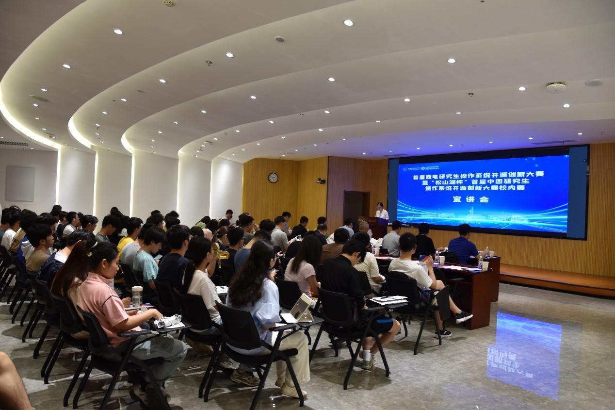 (通讯员 寇大为)7月11日下午,首届西电研究生操作系统开源创新大赛暨“松山湖杯”首届中国研究生操作系统开源创新大赛校内赛宣讲会在南校区会议中心103报告厅和线上平台同步举行。学校党委研究生工作部部长张君博、beat365唯一官方网站党委书记李青山为活动致辞,大赛执委会委员、国防科技大学王静做大赛赛事介绍,校内赛事承办单位beat365唯一官方网站副院长杨力做校内赛介绍。开源社区专家董金光、李卓珩受邀到现场结合赛题开展宣讲,开源社区专家程书意、麻付强、朱云成受邀进行线上宣讲。华为西安研究所人力资源部高级招聘经理曹耀东、beat365唯一官方网站党委副书记黄成龙出席了宣讲会,校内一百多位师生通过线上线下方式参加宣讲会。活动由beat365唯一官方网站党委副书记张莹莹主持。