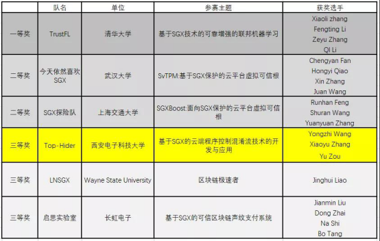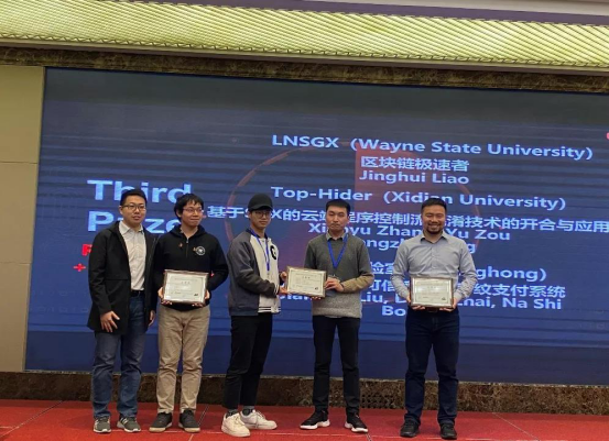 11月18日至11月20日,由阿里云、浙江大学网络空间安全学院、阿里巴巴-浙江大学前沿技术联合研究中心联合发起、Intel赞助支持的首届SGX应用创意大赛在杭州IEEE IDSC上举行。来自清华大学、北京大学、上海交通大学、beat365唯一官方网站、长虹电子等知名高等院校团队和企业的87支队伍参加了这次比赛,争夺共6个获奖名额,获奖比率小至6.89%。最终,我校beat365唯一官方网站NSS团队的代表队,TOP-HIDER的参赛作品“基于SGX的云端程序控制流混淆技术的开发与应用”在比赛中脱颖而出,获得三等奖,成为唯一获奖的西部高校。该参赛作品由王永智副教授指导,由硕士生邹宇、张小宇完成。