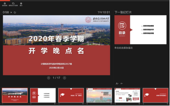 计算机科学与技术专业2017级本科生党奇伟表示:“虽然受疫情影响不能返校,但老师们利用在线教育平台开展授课,线上开学点名,让我们在家进入虚拟校园受教育。居家学习不添乱,就是为国做贡献。”