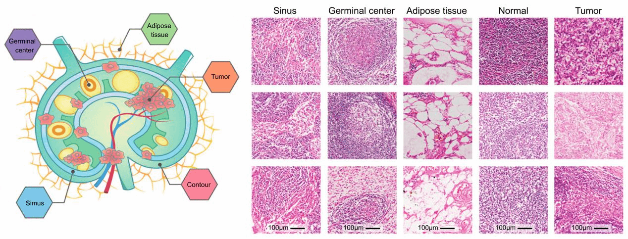 肿瘤淋巴结转移分析是基于TNM分期的癌症治疗预后估计的关键环节之一。目前,临床主要是采用目测检查淋巴结的组织切片方式,这个过程需要对每个患者检查至少十几个淋巴结,非常耗时且很容易因无法识别肿瘤淋巴结微转移而导致漏诊。此外,即使在同一N分期中,患者的预后也存在巨大差异。实际上,病理分析是肿瘤疾病诊断的“金标准”,病理分析对患者的预后分型分期至关重要。然而,由于人眼观察的局限性,病理图像体积巨大,这些潜在信息一直未被充分挖掘和量化。病理数字化扫描技术与人工智能的发展,为病理信息的充分挖掘提供了强有力的技术手段。