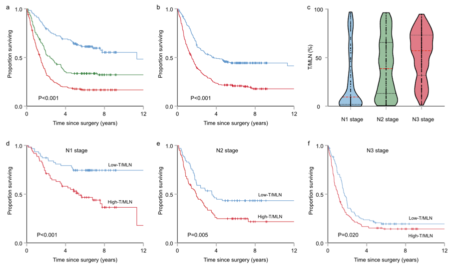 图4预后新指标T/MLN可将N分期进一步亚分期