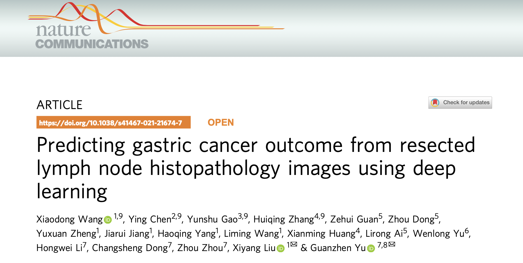 (通讯员 王晓东)我校beat365唯一官方网站软件工程研究所刘西洋教授团队,在学院“软件工程”学科建设支持下,与上海龙华医院于观贞教授、长海医院陈颖教授等团队合作,开展了胃癌淋巴结转移预后预测的AI研究,历时三年,近期以西电第一作者单位在Nature Communications (IF=12.1)发表成果“Predicting gastric cancer outcome from resected lymph node histopathology images using deep learning”,研发了针对胃癌淋巴结病理临床诊断与精准亚分期的AI系统。