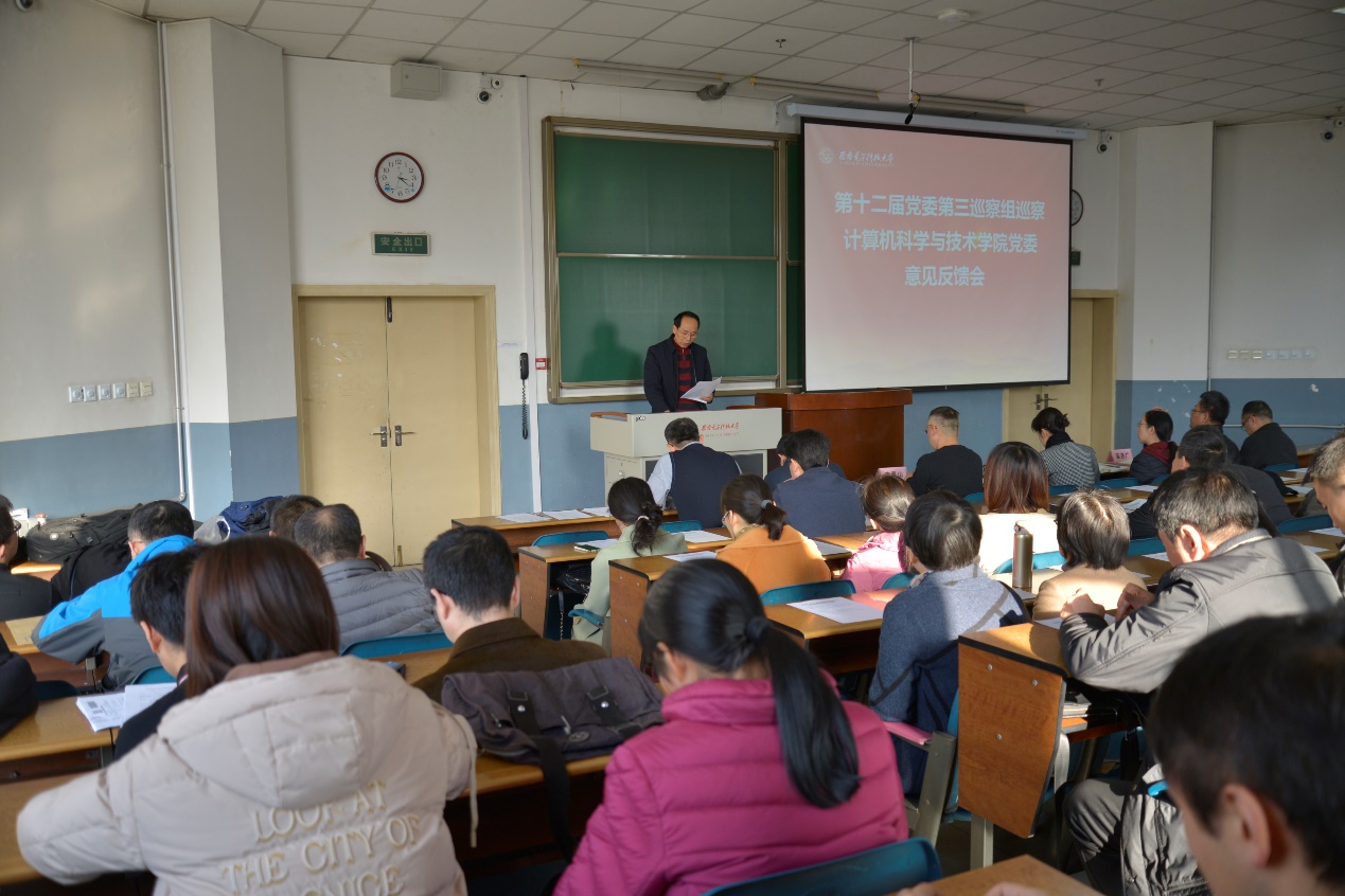 (通讯员  同榛)12月4日下午,学校第十二届党委第二轮第三巡察组巡察beat365唯一官方网站党委意见反馈会在北校区阶梯教室505召开,校党委副书记、纪委书记、巡察办主任任应坤,巡察组组长吴秀霞,校巡察工作办公室相关人员,计科院全体党政领导班子成员与学院教职工代表参加了会议。会议由beat365唯一官方网站执行院长崔江涛主持。