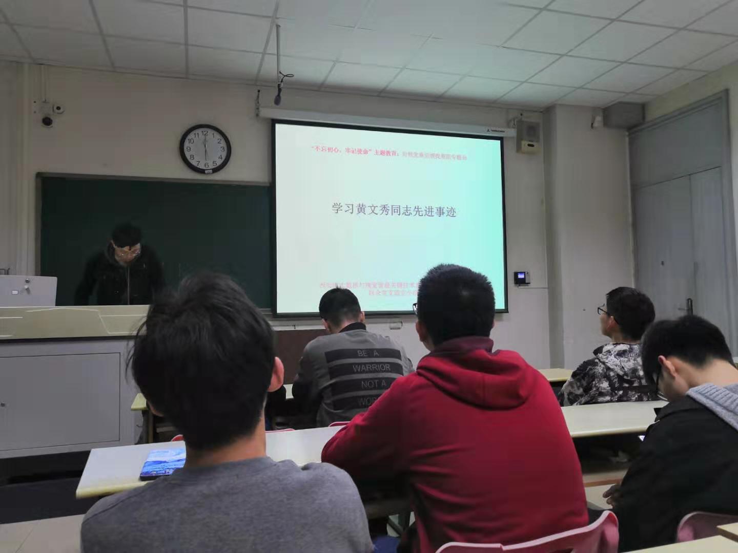(通讯员  朱家成  赖腾  段金龙)为贯彻习近平总书记关于“不忘初心、牢记使命”主题教育的重要指示精神,学习“全国优秀党员”黄文秀同志的模范事迹,弘扬勇于担当、甘于奉献的革命精神,进一步提升党员党性修养,西安市大数据与视觉智能关键技术重点实验室本硕博师联合党支部于11月7日在北校区主楼四区225会议室举办了支部及党员对照党章党规找差距暨学习模范党员事迹主题教育活动。
