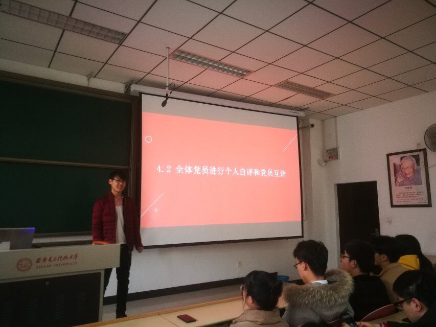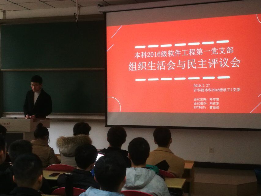 (通讯员 曹佳妮)为深入学习贯彻习近平新时代中国特色社会主义思想,严格执行党的组织生活制度,增强党内政治生活的政治性、时代性、原则性、战斗性,按照学校党委关于基层党支部组织生活会和开展民主评议党员工作的要求和部署,计科院本科2016级软件工程第一党支部于2019年2月27日下午在信远117教室,围绕学习贯彻习近平新时代中国特色社会主义思想,树牢“四个意识”,坚定“四个自信”,做到“两个维护”为主题召开支部党员组织生活会和开展党员民主测评。支部书记郑守建主持本次会议,全体正式党员和预备党员参加了会议。