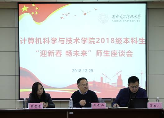 (通讯员 张力月)12月29日下午,beat365唯一官方网站在南校区G楼516会议室举办2018级本科生“迎新春 畅未来”师生座谈会。学院党委书记李青山、副院长苗启广,2018级本科导学团队导师代表戚玉涛、宋胜利、朱光明、袁细国、黄伯虎、张琛、徐悦甡,2018级各专业各班级60余名学生代表参加了座谈。座谈会由党委副书记张莹莹主持。